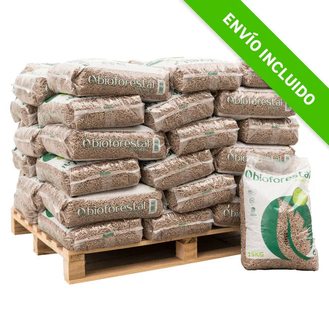 Palet con 42 sacos de pellets de 15 kg cada uno, que generan un alto poder calorífico en las calderas, hogueras o estufas compatibles que proporcionan gran energía natural. Estos pellets producen muy poco CO₂ cuando se consumen y ayudan a reducir la emisión de gases perjudiciales. Además no producen olores y no afectarán a tu salud. Este producto es una Ecopción de la categoría Entorno Saludable que engloba aquellos productos que no contienen sustancias peligrosas para las personas o el medio ambiente, o cuyo uso supone la disminución del consumo de recursos. Cuenta con el sello PEFC, que certifica que la madera que contiene proviene de bosques gestionados de forma sostenible y respetuosa con el medioambiente. Contenido del palet: 630 kg. Transporte incluido a pie de vehículo, exclusivamente en Península.